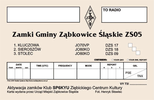 gminy Ząbkowice Śląskie ZS05. W ramach Polskich Dni Zamkowych kiedy krótkofalowcy Polscy uruchamiają swoje